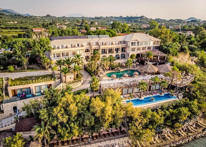 Das 5-Sterne Mediterranean Beach Resort Laganas liegt in einer 5 Gehminuten Entfernung vom Strand Laganas beach und bietet seinen Gästen eine Vielzahl von Freizeitmöglichkeiten, wie z. B. Mountainbiking, Tauchen und Bogenschießen. Agios Sostis liegt in 3 km Entfernung und Hafen von Zakynthos ist innerhalb von 15 Minuten mit dem Auto vom Hotel aus zu erreichen.
