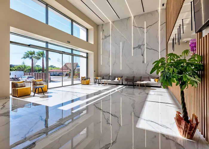 Gelegen op 7 minuten lopen van Pure BeachClub heeft het 5-sterren White Olive Elite Laganas Hotel 195 kamers. Het hotel heeft uitzicht op de tuin en beschikt over Wi-Fi in de hele woning.